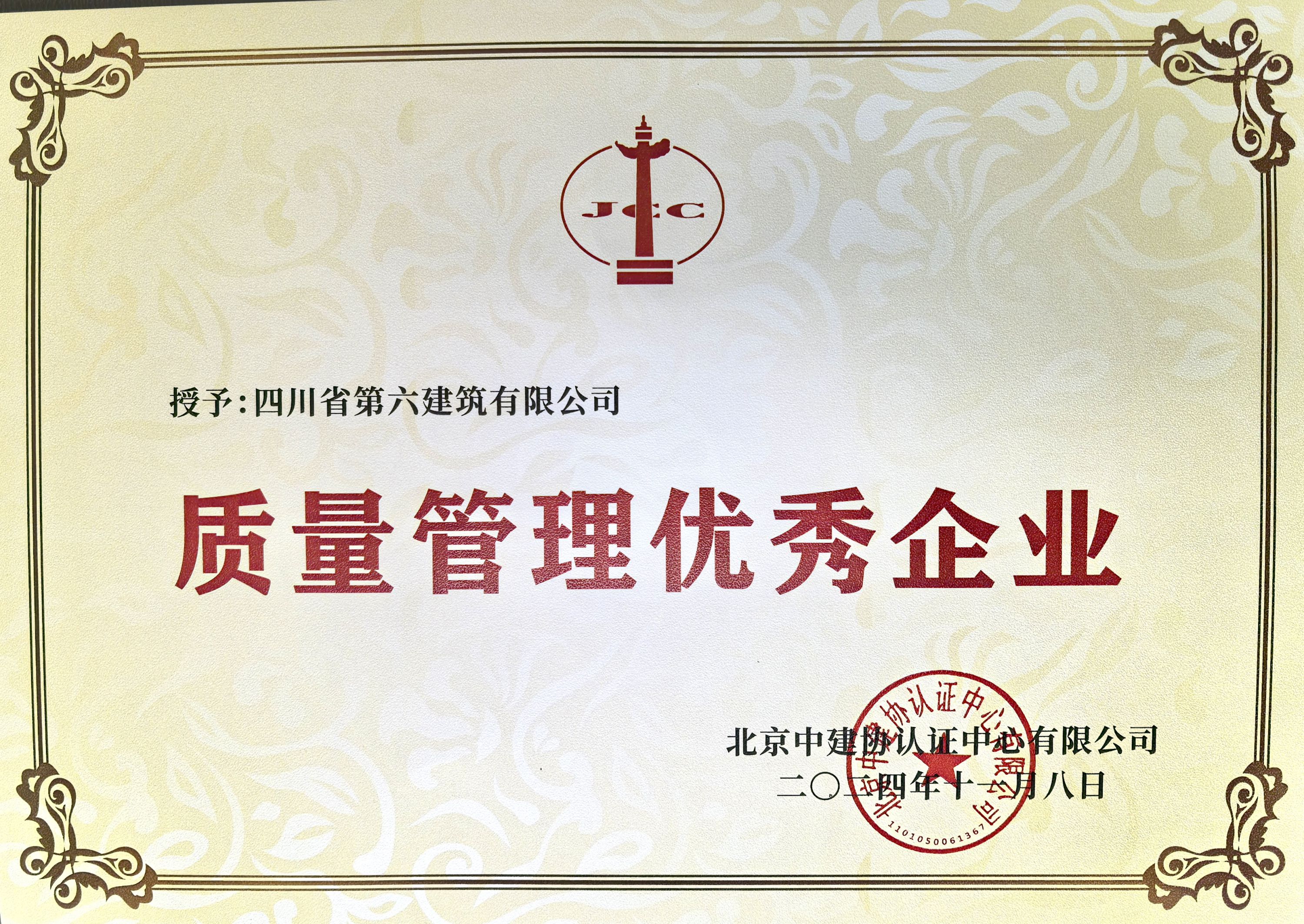 近日,公司在中建協(xié)認(rèn)證中心開展的質(zhì)量管理優(yōu)秀企業(yè)創(chuàng)新案例交流活動競賽中榮獲“質(zhì)量管理優(yōu)秀企業(yè)”稱號。