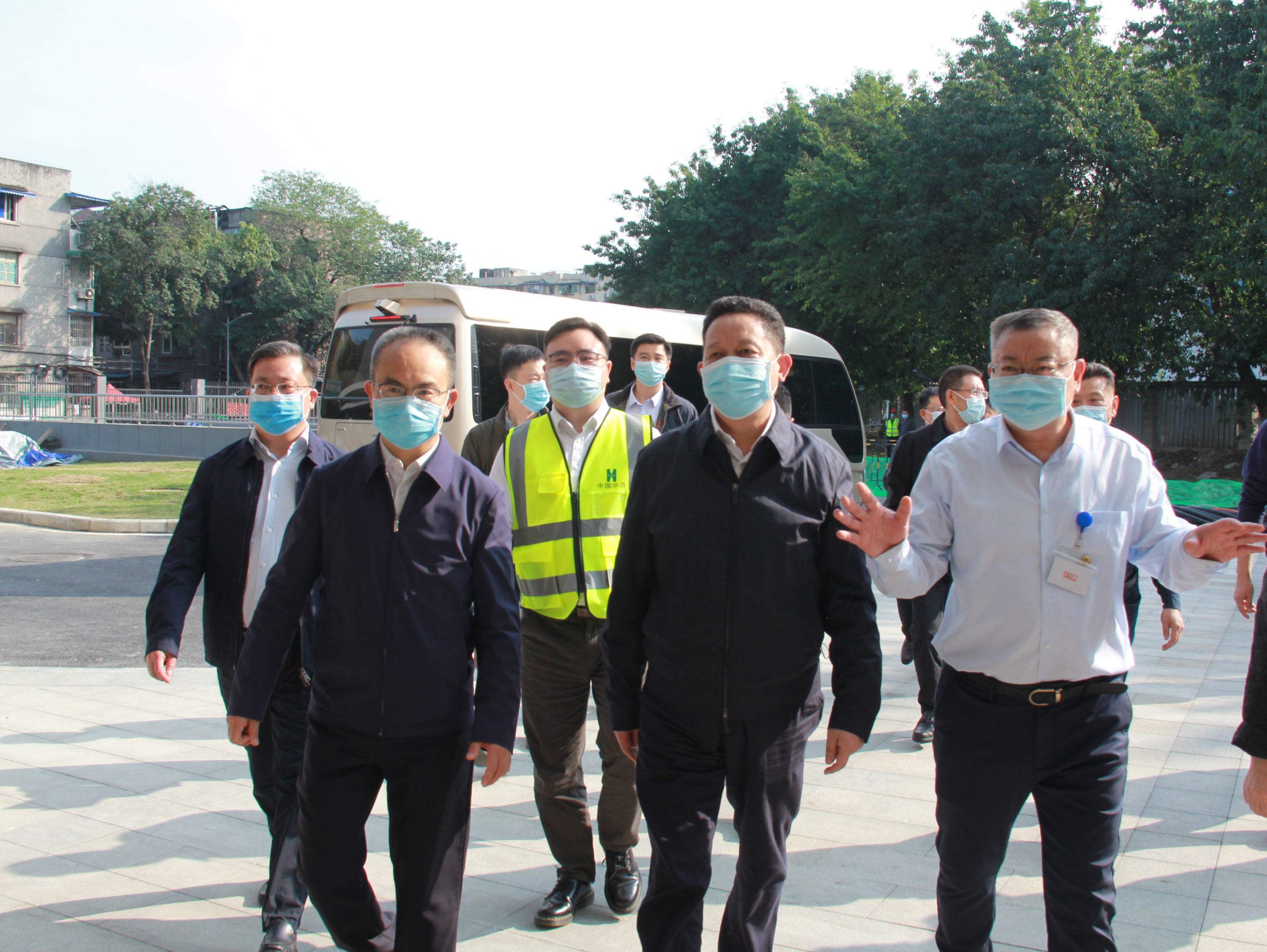 在門診綜合樓前,楊興平同建設(shè)、施工單位代表進行交流。他指出,四川省老年醫(yī)學中心一期項目是省委省政府高度重視的民生工程,希望各家參建單位進一步統(tǒng)一思想、明確目標、堅定信心,確保預(yù)期目標的順利實現(xiàn)。他強調(diào),四川六建要按照既定的施工計劃,抓牢工程安全質(zhì)量環(huán)保管理,做好工程細節(jié),加強成品保護,確保項目如期投入使用。