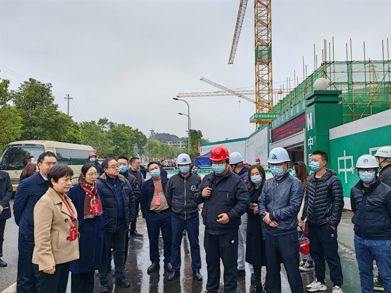2021年11月18日上午,大渡口區政協主席張瓊攜區政府相關部門人員一行,在建設單位渝地西部公司總經理袁野,重慶分公司總經理張軍陪同下蒞臨大渡口釣魚嘴P1安置房項目開展民生工程調研。