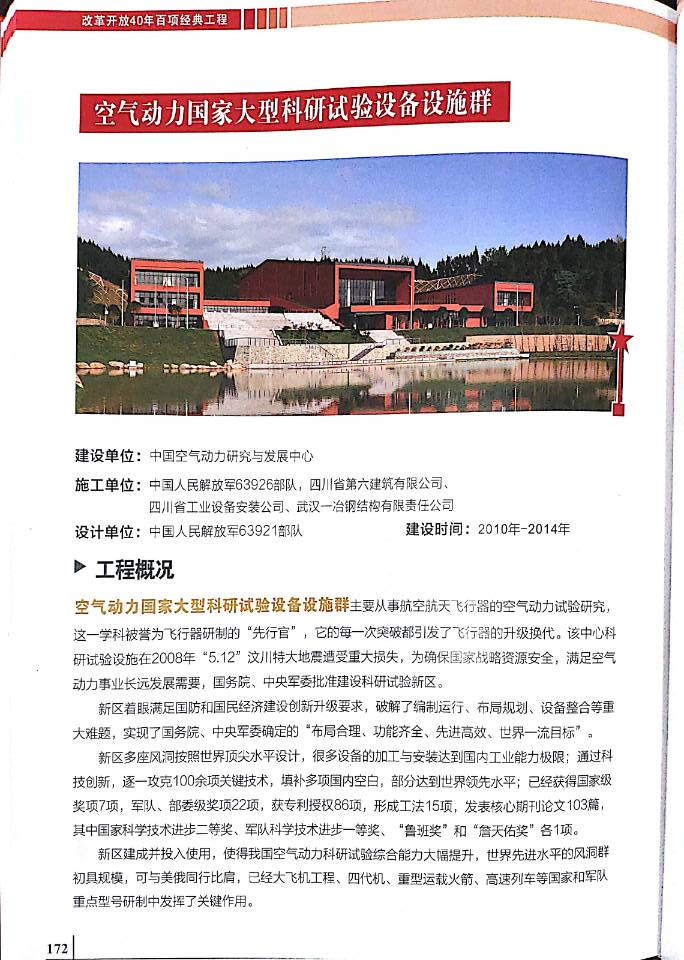 近日,在北京,由中國建筑業(yè)協會主辦并召開的“激蕩四十年,改革正當時——改革開放40周年建筑業(yè)在行動紀念大會”上,由公司參與建設的“空氣動力國家大型科研實驗設備設施群”,在喜獲“國家優(yōu)質工程金獎”的基礎上被評為改革開放四十周年百項經典工程。