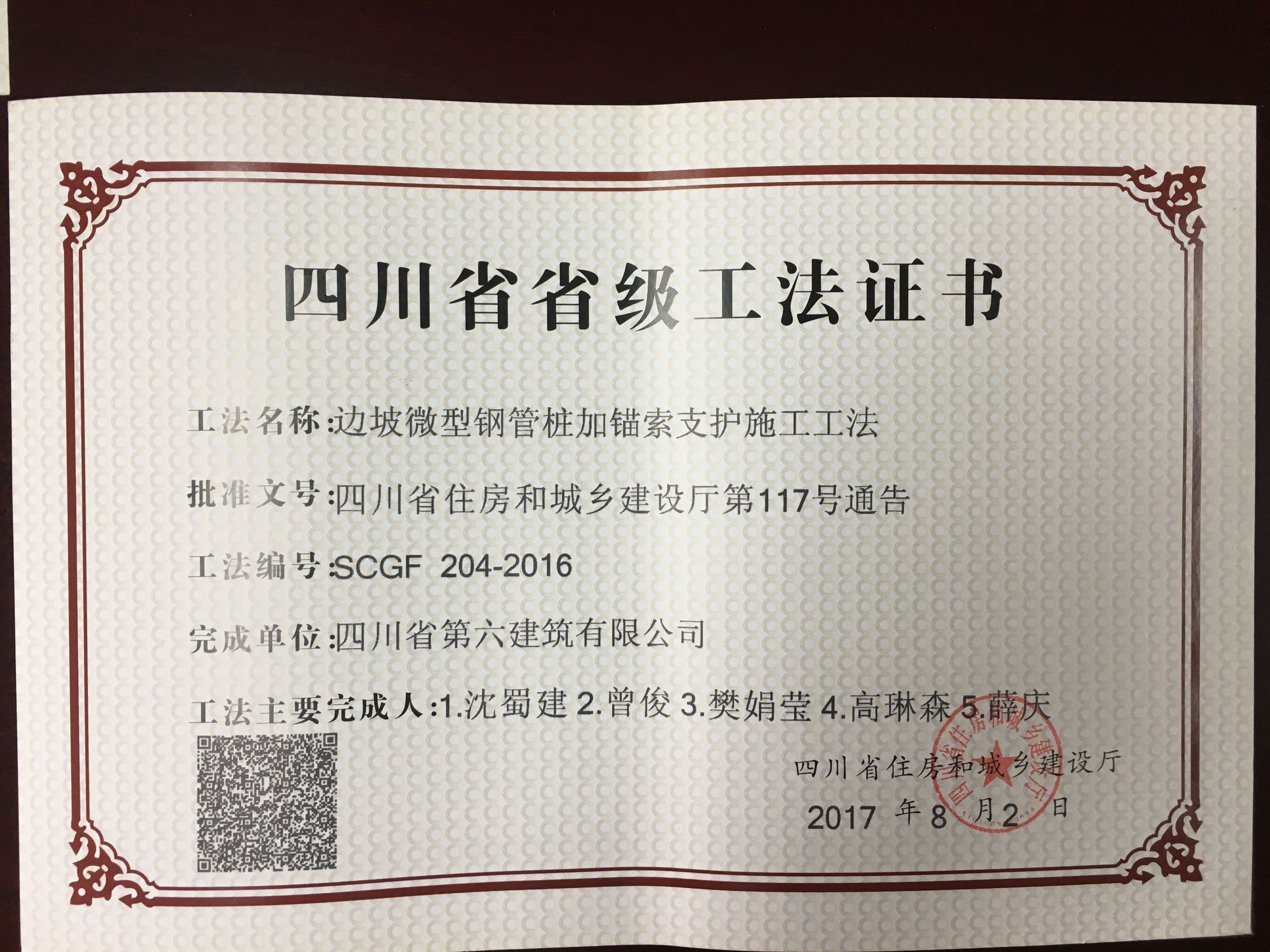 近日,四川省住房和城鄉建設廳公布2016年度四川省工程建設省級工法名單,公司第一工程分公司編制的邊坡微型鋼管樁加錨索支護施工工法、彩色透水砼整體路面施工工法、彩色生態透水整體路面彩繪施工工法名列其中。