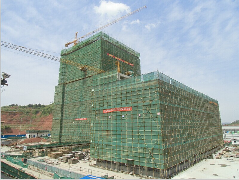 遂寧市恒信·寰宇中心1號樓工程是三分公司近年來首次承接的超高層建筑物,其主體高度為139.85m,建筑高度達到151.7m,屬遂寧市地標性建筑物。該工程位于遂寧市中國西部現代物流港商流核心區內,場地東側毗鄰遂寧市商務客運車站,南側為318國道,場地地勢較為開闊、平坦。本工程由1幢35層塔樓建筑及4層裙房和兩層地下室組成,其中,主樓部分基礎為2.9m厚筏板基礎,電梯井和集水坑最大厚度達7.7m。